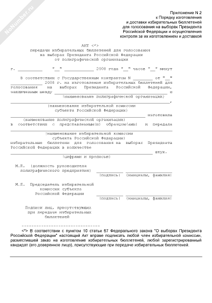- 1375Акт передачи избирательных бюллетеней для голосования на выборах Президента Российской Федерации от полиграфической организации