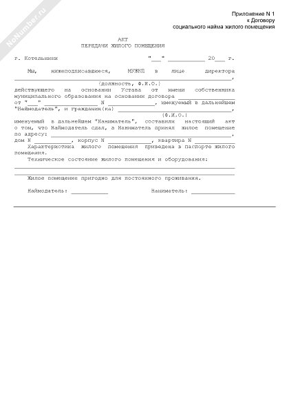 - 1369Акт передачи жилого помещения (приложение к договору социального найма жилого помещения, находящегося в муниципальной собственности городского округа Котельники Московской области)