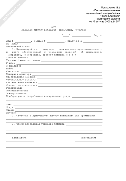 - 1373Акт передачи жилого помещения (квартиры, комнаты) на территории города Климовска Московской области