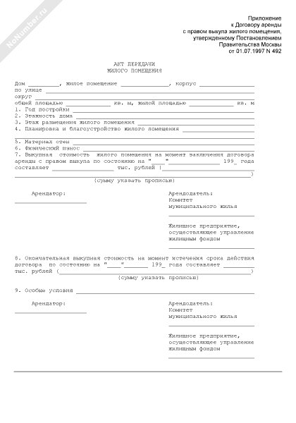 - 1368Акт передачи жилого помещения (приложение к примерному договору аренды с правом выкупа жилого помещения)