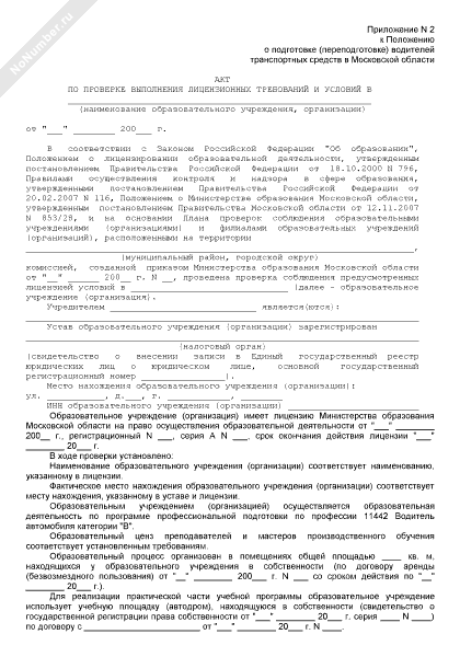 - 1445Акт по проверке выполнения лицензионных требований и условий в образовательном учреждении (организации) по подготовке (переподготовке) водителей транспортных средств в Московской области