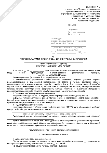 - 1456Акт по результатам инспектирования (контрольной проверки) военно-учебного заведения внутренних войск МВД России