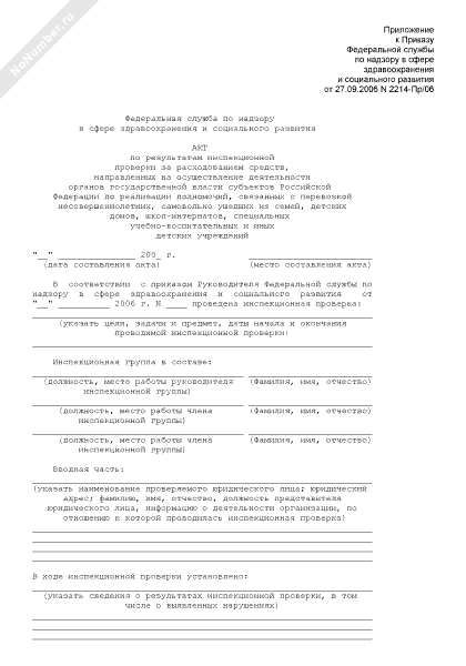 - 1460Акт по результатам инспекционной проверки за расходованием средств, направленных на осуществление деятельности органов государственной власти субъектов Российской Федерации по реализации полномочий, связанных с перевозкой несовершеннолетних, самовольно ушедших из семей, детских домов, школ-интернатов, специальных учебно-воспитательных и иных детских учреждений