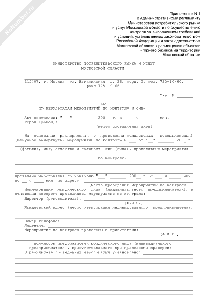 - 1457Акт по результатам мероприятий по контролю за выполнением требований и условий, установленных к размещению объектов игорного бизнеса на территории Московской области