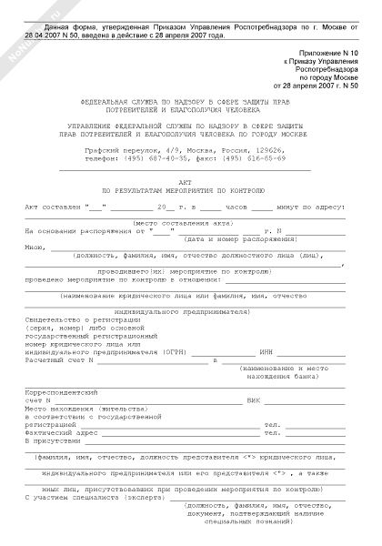 - 1455Акт по результатам мероприятия по контролю в сфере защиты прав потребителей и благополучия человека по городу Москве