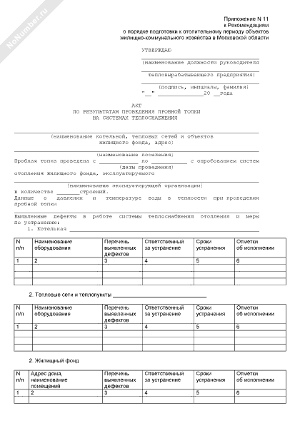 - 1458Акт по результатам проведения пробной топки на системах теплоснабжения жилищно-коммунального хозяйства Московской области
