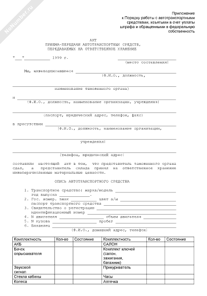 - 1539Акт приема-передачи автотранспортных средств, передаваемых на ответственное хранение