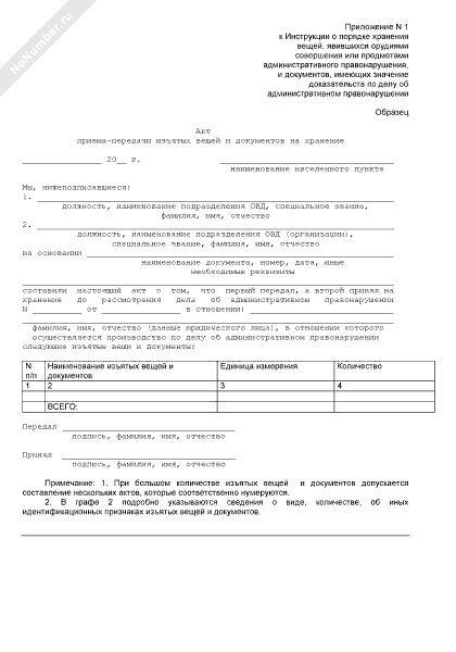 - 1521Акт приема-передачи изъятых вещей и документов на хранение по делу об административном правонарушении