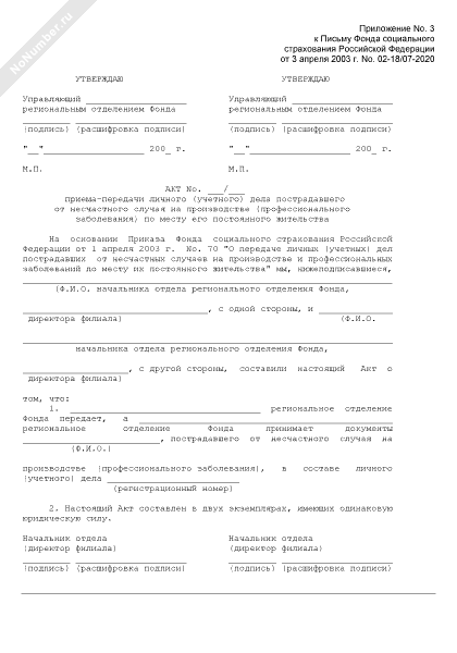 - 1534Акт приема-передачи личного (учетного) дела пострадавшего от несчастного случая на производстве (профессионального заболевания) по месту его постоянного жительства