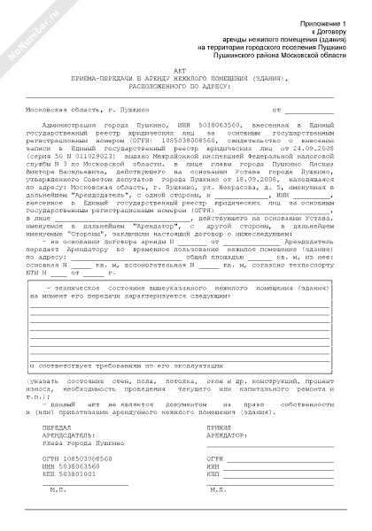 - 1532Акт приема-передачи в аренду нежилого помещения (здания) (приложение к договору аренды нежилого помещения (здания) на территории городского поселения Пушкино Пушкинского района Московской области)