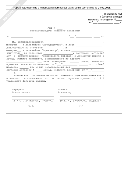 - 1550Акт приема-передачи нежилого помещения (приложение к договору аренды нежилого помещения)