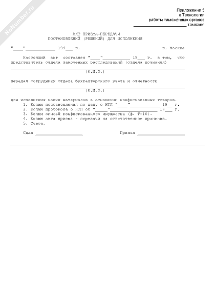 - 1547Акт приема-передачи сотруднику отдела бухгалтерского учета и отчетности для исполнения постановлений (решений) в отношении конфискованных товаров