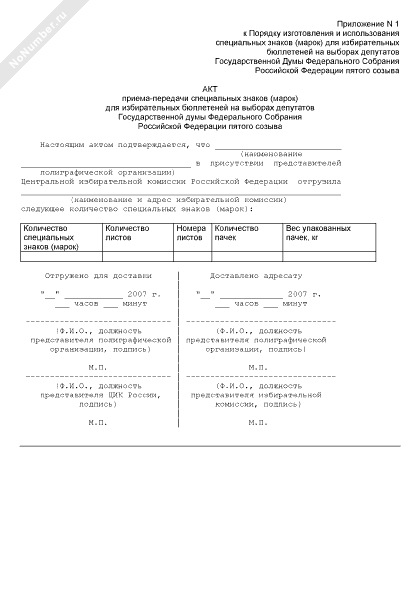 - 1541Акт приема-передачи специальных знаков (марок) для избирательных бюллетеней на выборах депутатов Государственной думы Федерального Собрания Российской Федерации пятого созыва