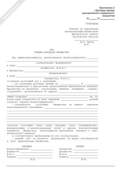 - 1680Акт приема-передачи имущества (приложение к договору аренды муниципального недвижимого имущества Дмитровского района Московской области)