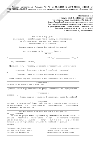 - 1675Акт приема-передачи информации о неработающих пенсионерах, застрахованных по обязательному медицинскому страхованию, проживающих на территории субъекта Российской Федерации