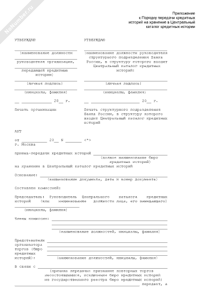 - 1679Акт приема-передачи кредитных историй на хранение в Центральный каталог кредитных историй