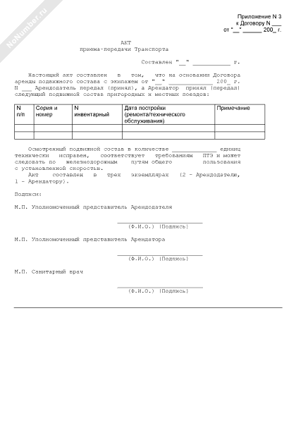 - 1677Акт приема-передачи транспорта (приложение к договору аренды подвижного состава с экипажем)