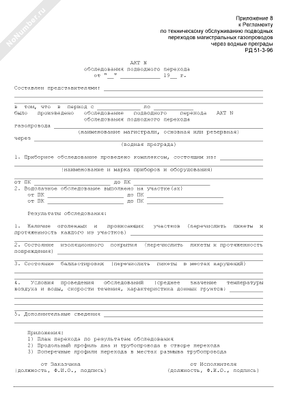 Акт обследования подводного перехода газопровода