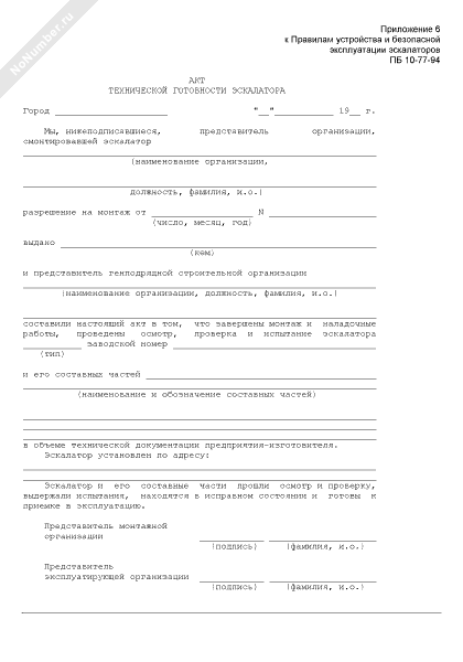 Акт технической готовности эскалатора