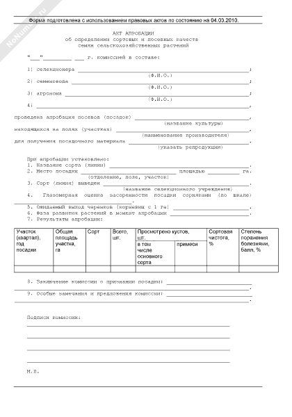 Акт апробации (определение сортовых и посевных качеств семян сельскохозяйственных растений)
