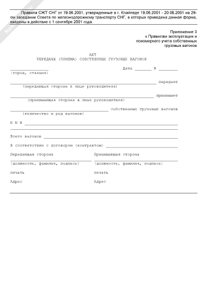 Акт передачи (приема) собственных грузовых вагонов