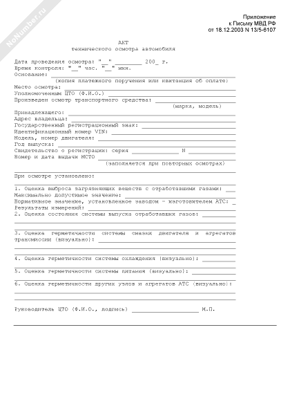 Акт технического осмотра автомобиля