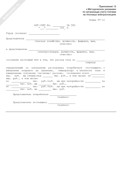 Акт-счет за расход газа на тепловых электростанциях (форма № ТТ-12)