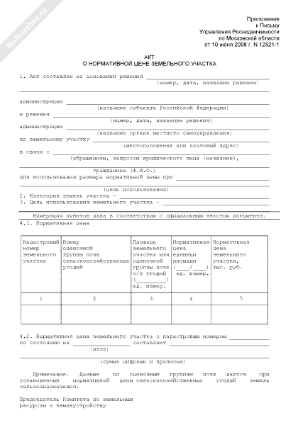 Акт о нормативной цене земельного участка в Московской области (рекомендуемый образец заполнения)