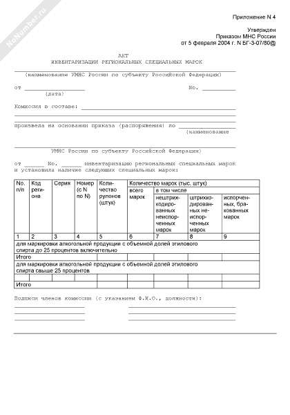 Акт инвентаризации региональных специальных марок