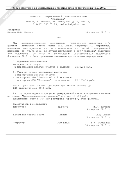 Акт о приеме делегации