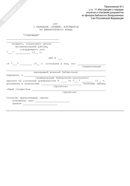 Акт о передаче (приеме) документов из библиотечного фонда