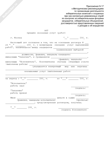 Акт приемки оказанных услуг (работ)
