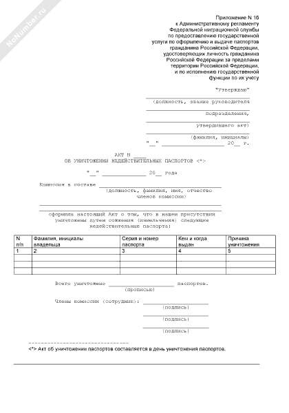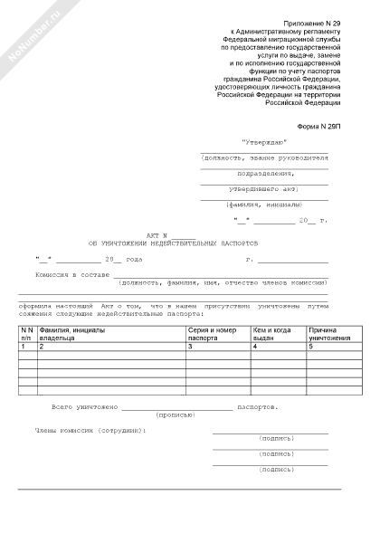 Акт об уничтожении недействительных паспортов (форма № 29П)