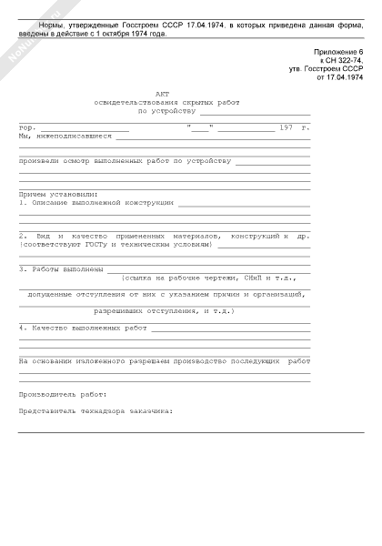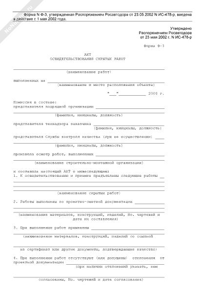 Акт освидетельствования скрытых работ (форма № Ф-3)