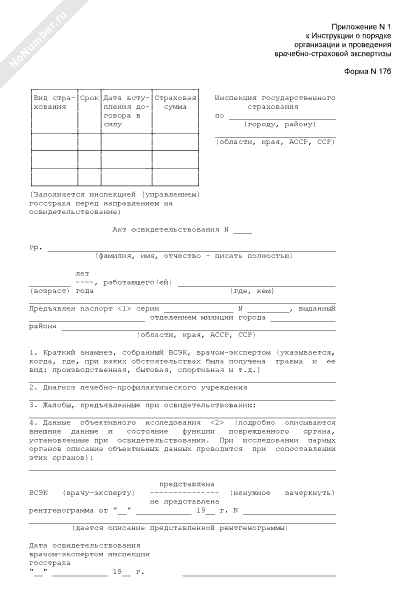 Акт освидетельствования застрахованного (форма № 176)