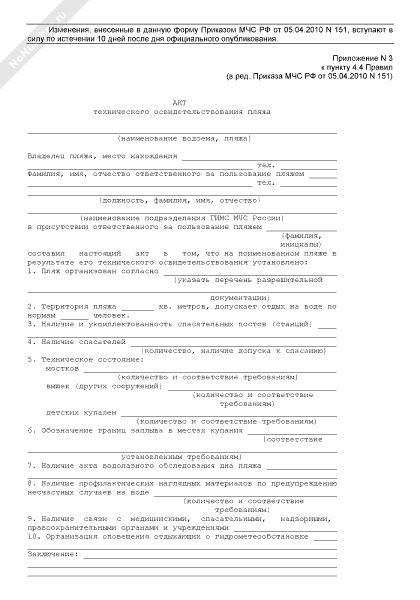 Акт технического освидетельствования пляжа