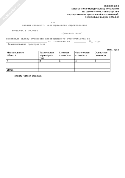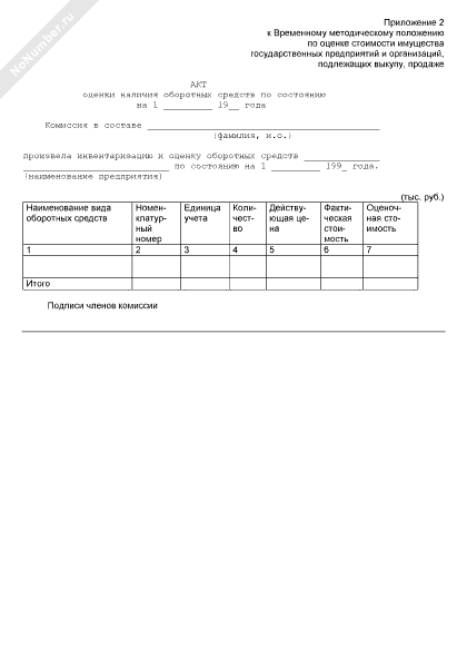 Акт оценки стоимости основных средств, подлежащих выкупу (продаже)