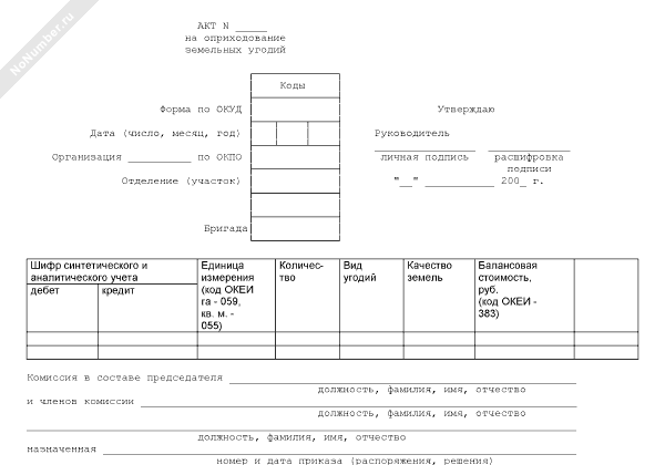 Акт на оприходование земельных угодий (форма № 401-АПК)