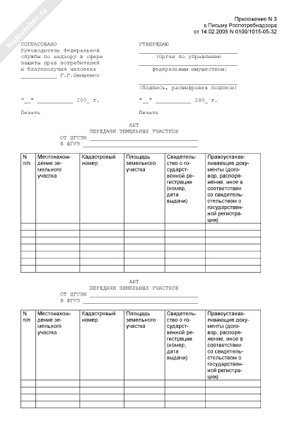 Акт передачи земельных участков от ЦГСЭН в ФГУЗ (рекомендуемый образец заполнения)
