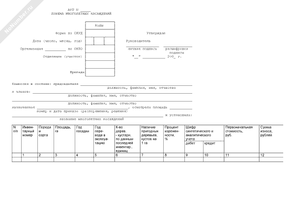 Акт приема многолетних насаждений (форма № 404-АПК)