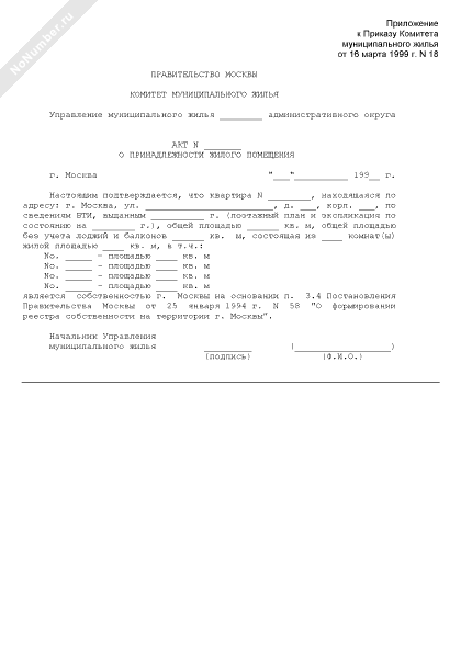 Акт о принадлежности жилого помещения к собственности г. Москвы