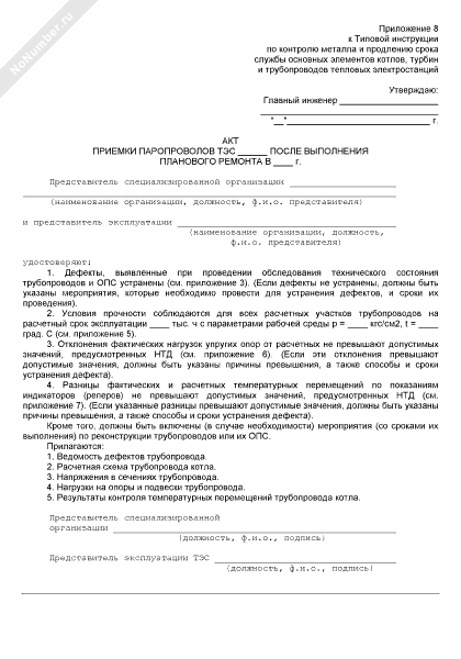 Акт приемки паропроводов ТЭС после выполнения планового ремонта