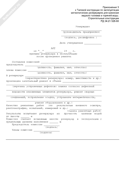 Акт приемки резервуара в эксплуатацию после проведения ремонта