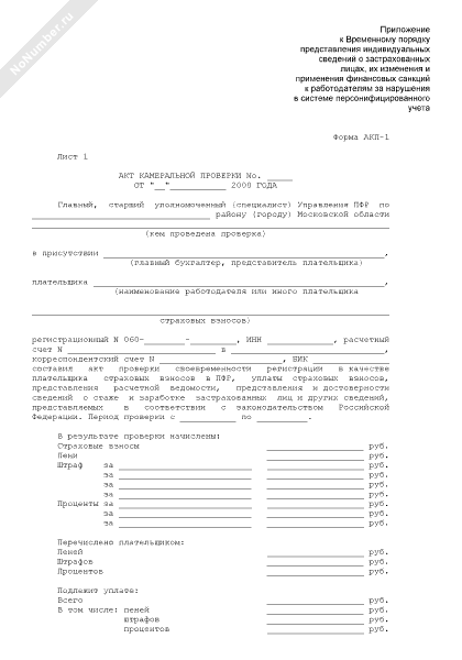 Акт камеральной проверки (форма № АКП-1)