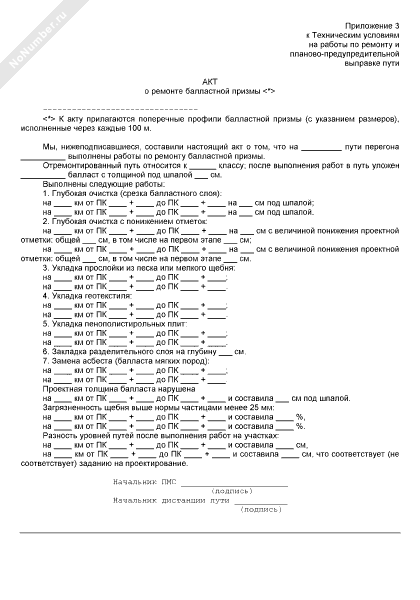 Акт о ремонте балластной призмы железнодорожного пути