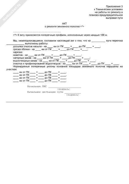 Акт о ремонте земляного полотна железнодорожного пути