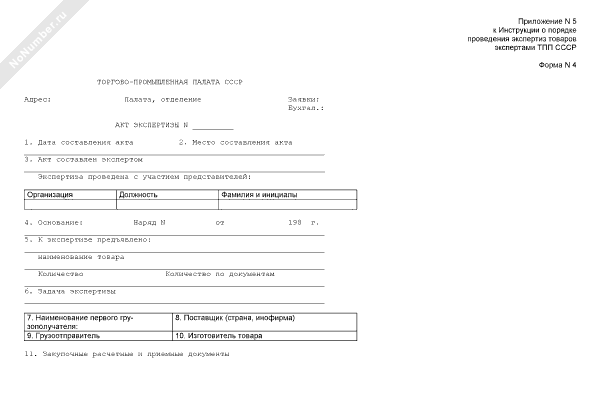 Акт экспертизы импортной продукции (форма № 4)
