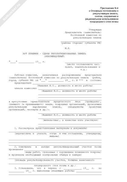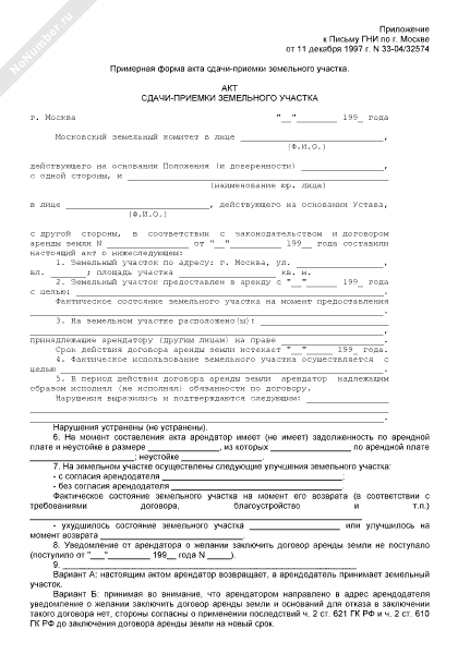 Акт сдачи-приемки земельного участка на территории города Москвы