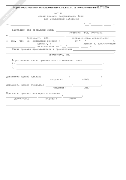 Акт сдачи-приемки документации (дел) при увольнении работника