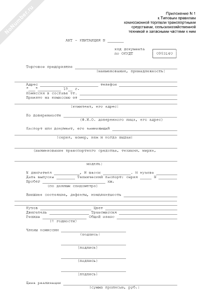 Акт-квитанция принятия на комиссию транспортного средства, техники